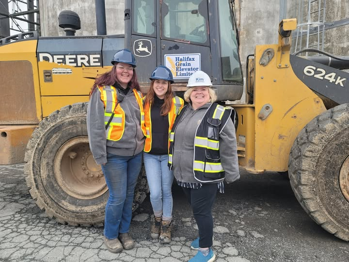 At the Halifax Grain Elevator we are pleased to recognize these trailblazing women bringing their skills to our team as we move grain to support Canada's food supply chain. Pictured here with our President & CEO - Kim Batherson (right) are: Emma Beeler - Apprentice Welder (left) and Krista Jarvis - Apprentice Millwright (center). Thank you for what you bring to our work every day!